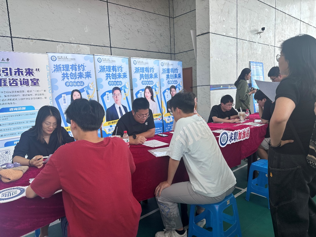 本次招聘会现场同步设立了“求职加油站”,邀请浙江零跑科技股份有限公司招聘总监李继平,恒生电子华东区域校招负责人张丁辰宇,浙江华云信息科技有限公司人力资源管理总部校招经理章蓉蓉,浙江理工大学招生与就业指导处副处长王惠燕,针对同学们的求职需求,为学生们提供了专业的简历优化与科学的职业规划辅导服务。这不仅让同学们以更完备的准备、更沉稳的心态面对面试与招聘,更深化了大家对行业发展大势和就业市场的认知,全力帮助同学们尽快斩获理想offer。
