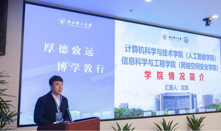 随后,沈剑介绍了学院学科建设、人才培养、科学研究与社会服务情况,充分体现了学院在脑机接口技术、人工智能大模型、网络空间安全、信息安全等前沿赛道持续深耕形成的一系列创新成果,为学院今后在相关领域的技术革新和产业高质量发展与合作奠定了基础。