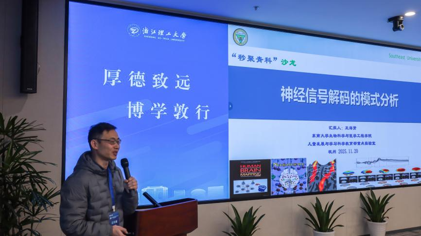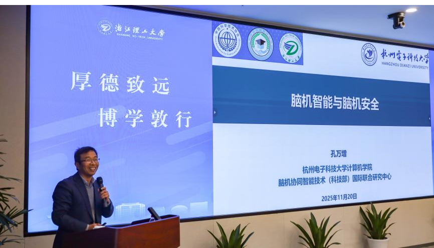 由杭州电子科技大学组织部部长孔万增教授和东南大学生物科学与医学工程学院王海贤教授分别做《脑机智能与脑机安全》、《神经信号解码的模式分析》的主题报告。