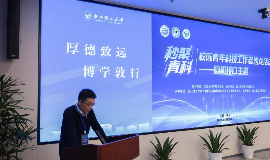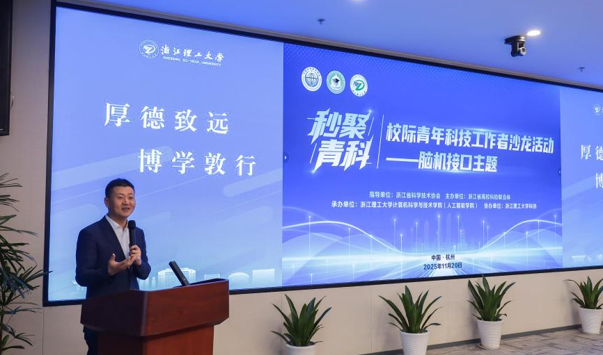 11月20日,浙江省科协指导、浙江省高校科协联合体主办、浙江理工大学计算机科学与技术学院(人工智能学院)承办、浙江理工大学科协协办的“秒聚青科”脑机接口校际青年科技工作者沙龙在浙江理工大学成功召开。浙江省科协组织人事部(人才工作处)副部长沈伟达、浙江省高校科协联合体执行秘书长,浙江省科普联合会副会长、秘书长忻皓一行,浙江理工大学科技处处长俞峰、计算机科学与技术学院(人工智能学院)院长沈剑及班子相关成员出席活动。会议由浙江省高校科协联合体执行秘书长,浙江省科普联合会副会长、秘书长忻皓主持。