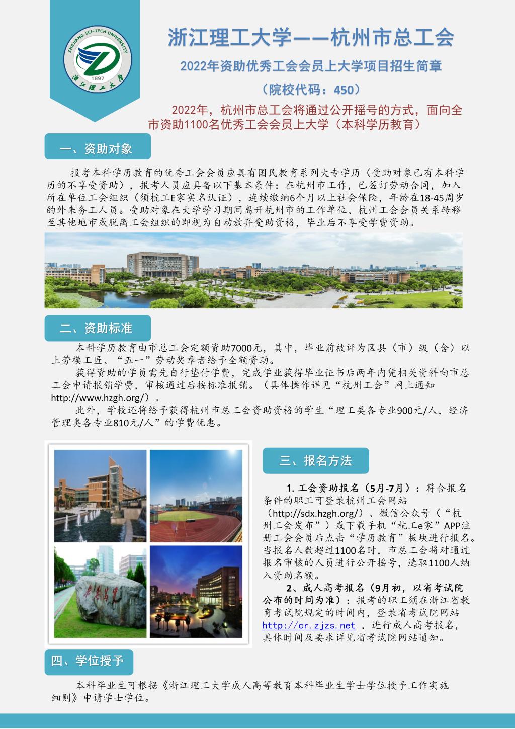 2022年杭州市总工会资助优秀工会会员上大学项目招生简章