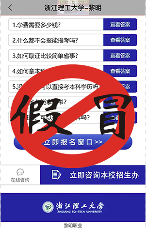 五、相关机构须严格遵守国家法律法规,立即停止不法侵权行为;相关网络媒体要承担起广告发布者资质审查的主体责任。对实施非法招生行为的单位或个人,浙江理工大学保留依法追究法律责任的权利。