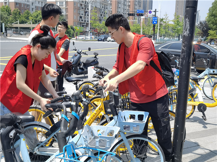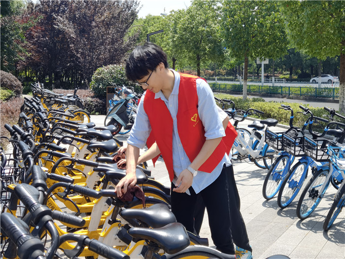 6月21日,我院学生党支部举办“擦拭单车 清新出行”特色志愿者活动,支部全体党员和学院青年志愿者们共计三十余人参与本次活动。各位志愿者辛勤付出,对学校师生的单车及学校南北门的共享单车进行有序的整理摆放,认真擦拭,并进行简单维护保养。本次志愿者活动共计服务几百余辆单车,获得校内师生一致好评。此次志愿者活动,为学校师生提供了一个更为干净、整洁、秩序的校园停车环境。