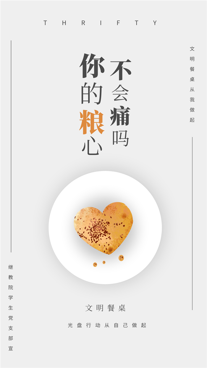 10月26日至10月28日,我院学生党支部组织开展“厉行节约 反对浪费”倡议设计活动。为践行习近平总书记“厉行节约、反对浪费”重要指示。每名支部的党员自行设计倡议书模板,形式多样,有文字形式(普通公文、诗歌),也有图案(海报、漫画)形式,作品深刻反映了党员们勤俭节约、反对铺张浪费的鲜明态度和坚定决心,也起到了警示、教育他人的目的。此次活动之后,学生党员们须发挥先锋模范作用,积极宣传“节约为荣,浪费可耻”的文明新风尚,以积极的行动影响身边的人。