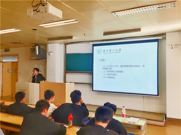 11月9日,我院安全信息员培训大会暨“浙理义警”成立大会在2号北楼325教室举行。大会宣读了关于“浙理义警”学院分队成立的通知,学生安全信息员兼任“浙理义警”。培训会上,学生安全信息员指导老师王国书着重强调了安全、禁毒及防诈骗宣传,强化学生信息员的职责,鼓励学生努力提高自身的综合素质。通过本次培训,信息员们充分认识到自己的责任,为下一步安全信息员工作开展奠定了坚实基础。