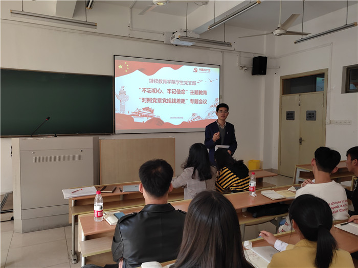 10月30日下午,我院学生党支部在下沙校区教室召开“不忘初心、牢记使命”主题教育对照党章党规找差距专题会议。会上集体学习了《中国共产党章程》《关于新形势下党内政治生活的若干准则》《中国共产党纪律处分条例》和主题教育有关文件,支部党员们重点对照党章、《准则》《条例》,紧扣“18个是否”具体要求,支部党员们严格按照校党委及院党总支要求,认真对照检查,仔细查摆问题,并向支部汇报了个人存在的问题以及整改的措施。