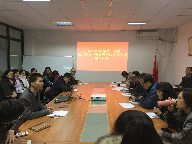 2016年11月23日晚,我院企业人才班各处室负责人、各系副主任、班主任及全体班助在锦阳综合会议室召开2016/2017学年第一学期第二次集中查寝暨消防安全专项整治行动动员会。会议由企业人才班学生处处长余国浩主持。