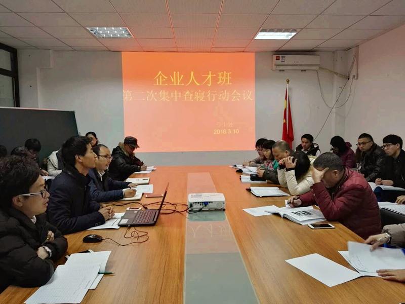 2016年3月10日晚,校领导、各处室及全体学工人员在综合会议室召开以“文明修身、清馨家园”为主题的集中查寝行动会议。会上企业人才班学生处处长潘能斌提出天气多变,细菌滋生,各类传染疾病多发,要求班主任提醒学生注重环境卫生,确保睡眠。同时强调了本次查寝行动的重点是关注学生思想动态,严查大功率电器,多与学生多沟通交流,统一思想后全体人员前往学生公寓进行检查。
