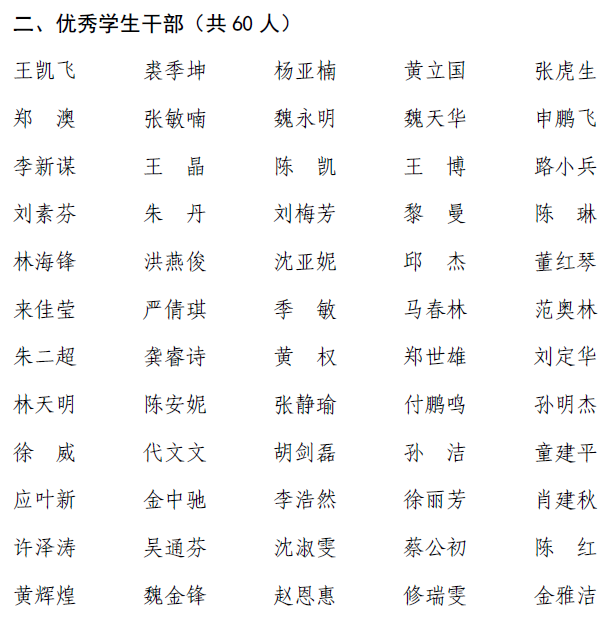 根据《浙江理工大学继续教育学院关于印发高等学历继续教育优秀学生、优秀学生干部、优秀毕业生评选办法的通知》(继教学〔2025〕1号文)相关文件,学院于2025年5月开展高等学历继续教育2024年度学生评优工作。经过学生本人申请、班级推选、教学点申报、学院学生线初审、学院党政联席会议审定等工作程序,现将评优结果公示如下: