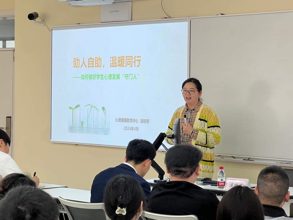 4月23日,我院组织学院学生工作人员在2S323教室开展了心理健康教育培训讲座,本次培训邀请了学校心理健康教育中心主任浦晓黎老师给大家授课。浦晓黎以《助人自助,温暖同行——如何做好学生心理发展“守门人”》为题,从心理问题、疾病的症状表现、发现甄别和处置建议三方面,结合自身经历的实际案例和心理学理论分析,向学工老师们做了详细解说。此次培训,增强了我院学工人员对心理危机的识别与预防能力,为筑牢学院学生心理健康防线奠定了坚实基础。