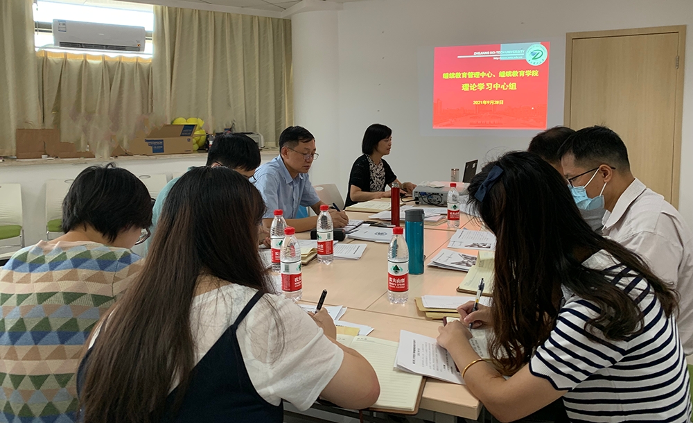 会上,学院(中心)党总支理论学习中心组成员集中学习了习近平在中央党校(国家行政学院)中青年干部培训班开班式上的重要讲话精神、习近平给全国高校黄大年式教师团队代表的回信、全省高校党建工作座谈会精神以及省委第一巡视组巡视浙江理工大学党委工作动员会上的讲话精神,学习学校党员干部和教师政治理论学习指导书上的相关内容。与会热源结合自身工作实际交流了学习体会,纷纷表示:要围绕习近平总书记“七一”重要讲话精神,对标对表习近平总书记重要讲话精神,坚定“红色”信念,在忠实践行“八八战略”、对标“十四五”发展规划等上级要求,拓展工作思路的广度和深度,充分展现继续教育的社会公益性,在全民终身学习体系建构、奋力打造“重要窗口”、共同富裕实现中贡献力量。
