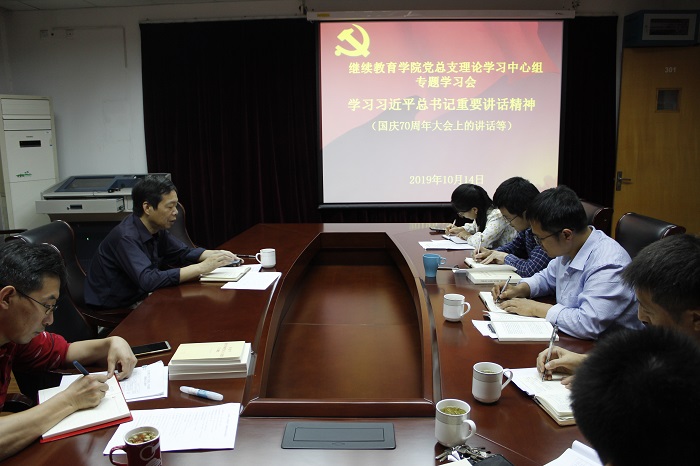 会上,党总支书记姚春序领学了习近平总书记在中央政治局第十七次集体学习时的重要讲话精神和习近平总书记在甘肃、河南考察时的重要讲话精神,副院长高建明领学了习近平总书记在国家勋章和国家荣誉称号颁授仪式上的讲话精神,党总支专职委员李卫敏领学了习近平总书记在庆祝中华人民共和国成立70周年大会上的讲话精神。之后大家进行了研讨交流。