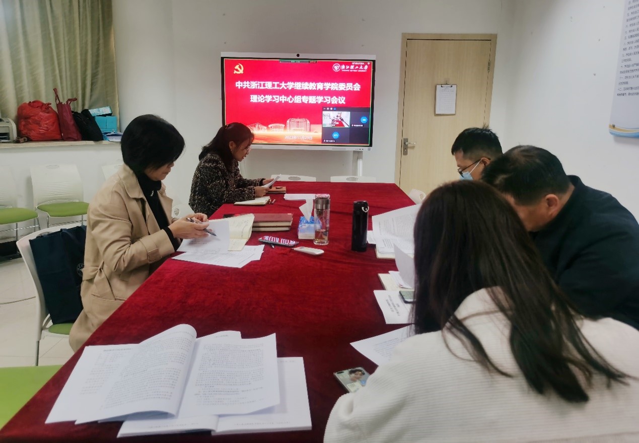 党委理论学习中心组成员陶炳增导学习近平总书记在中共中央政治局第九次集体学习时的重要讲话精神、习近平总书记重要文章《开辟马克思主义中国化时代化新境界》《中国式现代化面对面》等重要内容。他表示,要加强学习和理论探索,深入推进高等学历继续教育改革;要聚焦高质量发展,结合改革任务,加强过程管理,提高人才培养质量;要协同实干,用好共同体思维,为学校高质量发展贡献力量。
