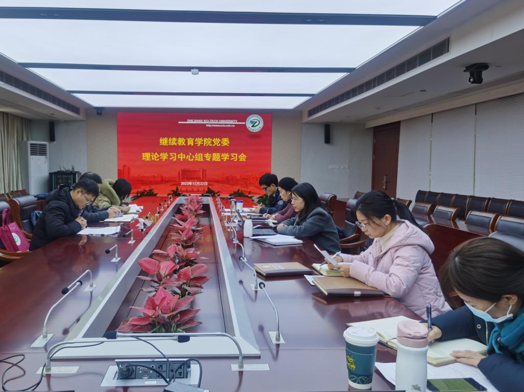 党委书记朱秋飞导学习近平总书记致良渚论坛重要贺信精神。她指出,习近平文化思想为担负起新的文化使命提供了强大思想武器和科学行动指南,要把学习习近平总书记致良渚论坛重要贺信精神与学习贯彻习近平文化思想相结合。她强调,要深化认识,认真贯彻落实全国全省宣传思想文化工作会议精神和省委十五届四次全会关于高水平打造文化强省工作部署,打造继续教育学院院本文化;要深入理解,结合实际工作,助力中华优秀传统文化创造性转化、创新性发展,推进红色文化、优秀传统文化和科普工作的有机结合;要坚持以文化人、以文育人,积极打造学院文化空间,着力探索具有理工标识、学院特色的文化载体。