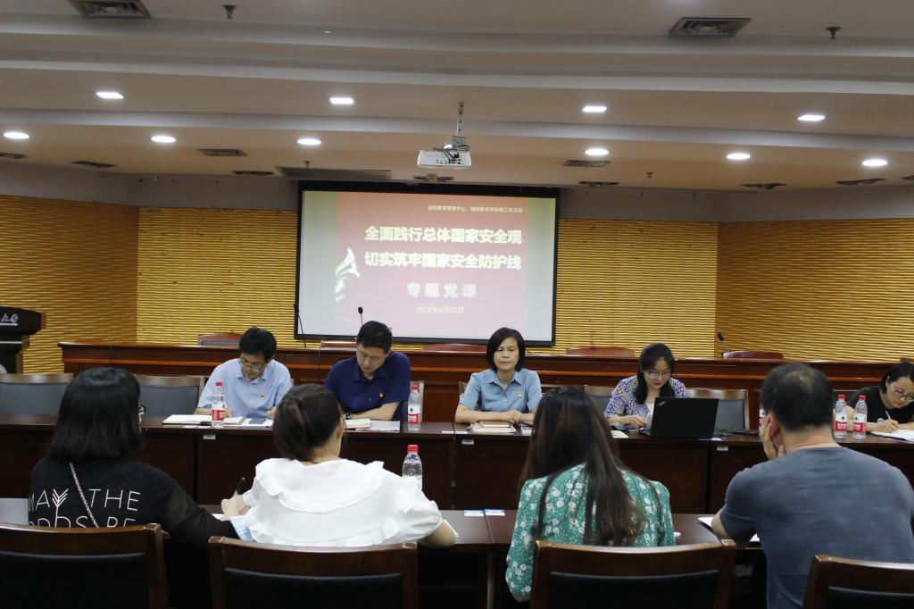 会上,赵新以“全面践行总体国家安全观 切实筑牢国家安全防护线”为主题讲授专题党课。通过讲解,与参会人员一起系统学习了《总体国家安全观学习纲要》主要内容。讲授过程中,她还结合自身学习习近平总书记关于国家安全观重要论述的感悟和学院工作实际交流了学习心得。强调在当前新发展阶段,大家要坚持总体国家安全观,坚持稳中求进工作总基调,坚定不移强化理论武装,坚定不移防范化解国家安全风险,坚定不移落实党中央战略部署,坚定不移推进国家安全体系和能力现代化,以实际行动迎接党的二十大胜利召开。