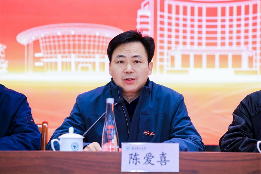 陈爱喜代表学校向2025级新同学表示热烈欢迎,并提出了三点希望和要求:一是要勤学善学常学不辍。主动培养浓厚学习兴趣,摸索高效学习方法,巧用学校资源,系统规划学习,让自己真正热爱学习、善于学习。二是要学以致用学用相长。在学习中锤炼“思路”,在行动中开拓“出路”,在干中学、在学中干,将知识化为综合能力,以实践反哺理论,持续创新学习实践方法。三是要水滴石穿厚积薄发。成事贵在耐心细致,着力培养“专心、专注、专业”能力,不惧困难,不断积累,实现个人远大志向。最后,他希望同学们在浙理成长为最好的自己,以青年人的不屈勇气与风华正茂引领未来,让青春理想在中国式现代化建设中焕发出耀眼夺目的时代光芒。