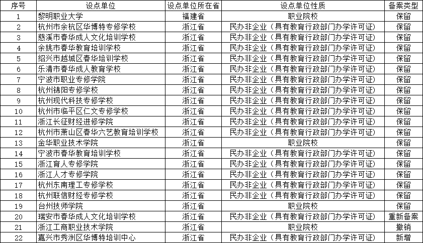 根据《浙江省教育厅办公室关于做好2025年高等学历继续教育专业和校外教学点设置与管理工作的通知》要求,经学校校长办公会审议通过,对我校2025年校外教学点拟备案情况予以公示,现公示如下: