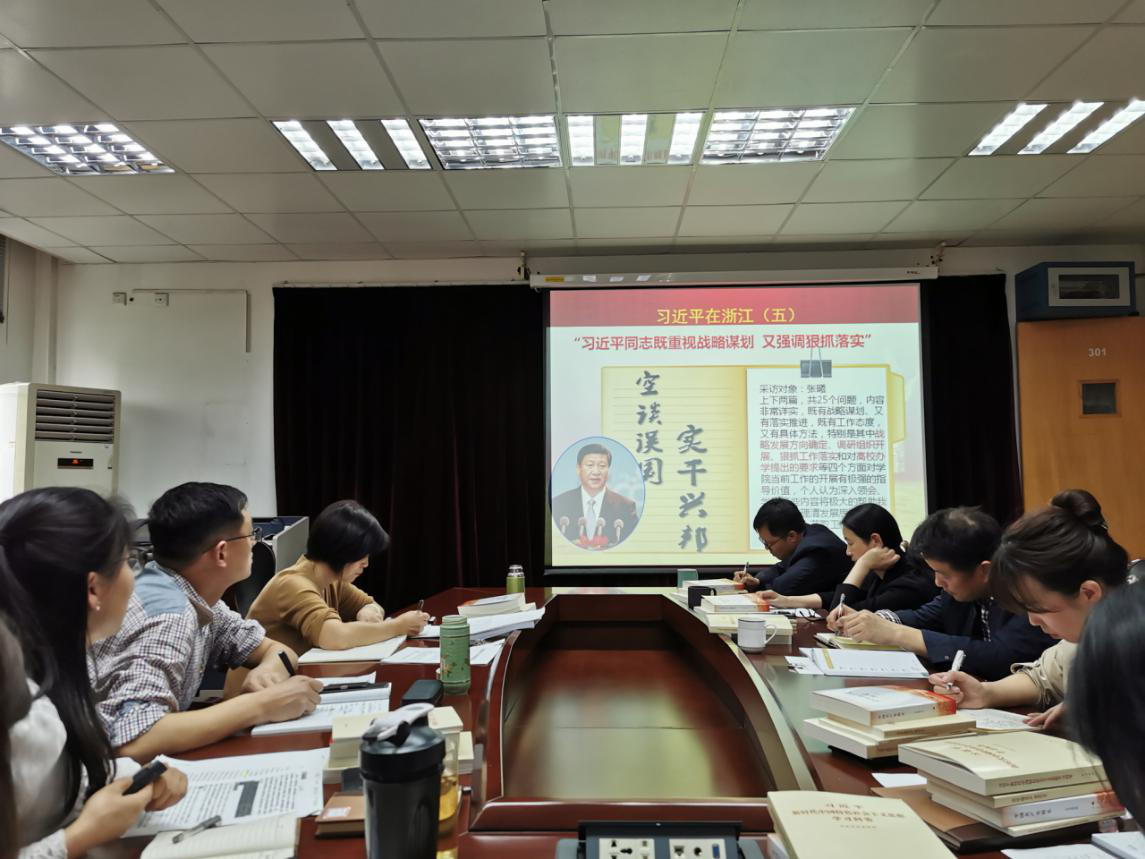 4月21日下午,我院教工党支部在文一校区301会议室召开主题党日学习会。为有序推进党史学习教育,深刻领会《习近平在浙江》精神,教工党支部书记赵新以《战略谋划定方向,狠抓落实见真章》为题,为支部党员上了一堂生动深刻的专题党课。