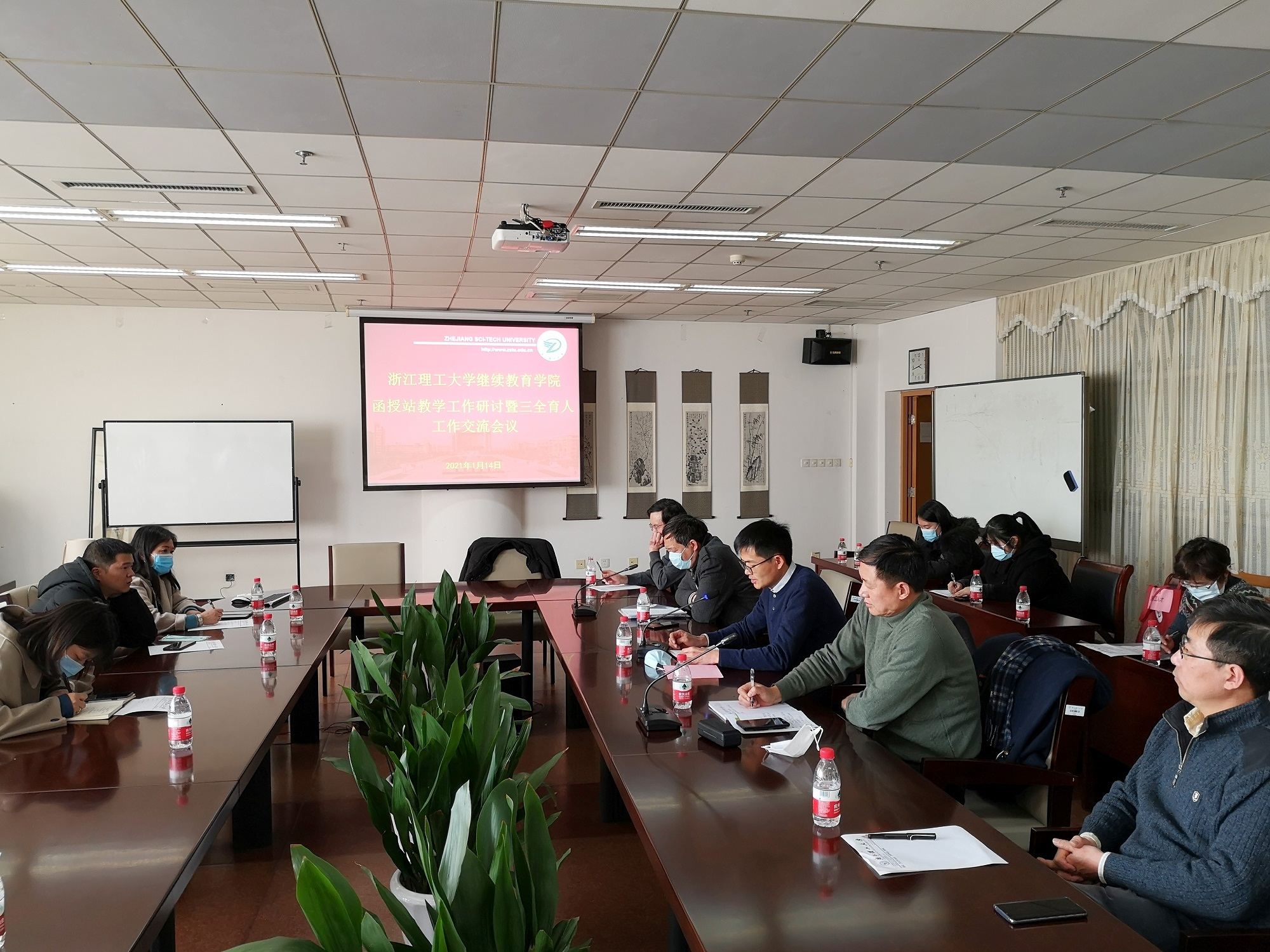 1月14日下午,我院在下沙校区图书馆7楼会议室召开函授站教学工作研讨暨“三全育人”工作经验交流会议。院长郭江峰、副院长高建明、党总支副书记李卫敏、调研员严丹萍及教学督导竺志超出席会议,函授站和学院相关科室30余人参加会议,会议由郭江峰主持。