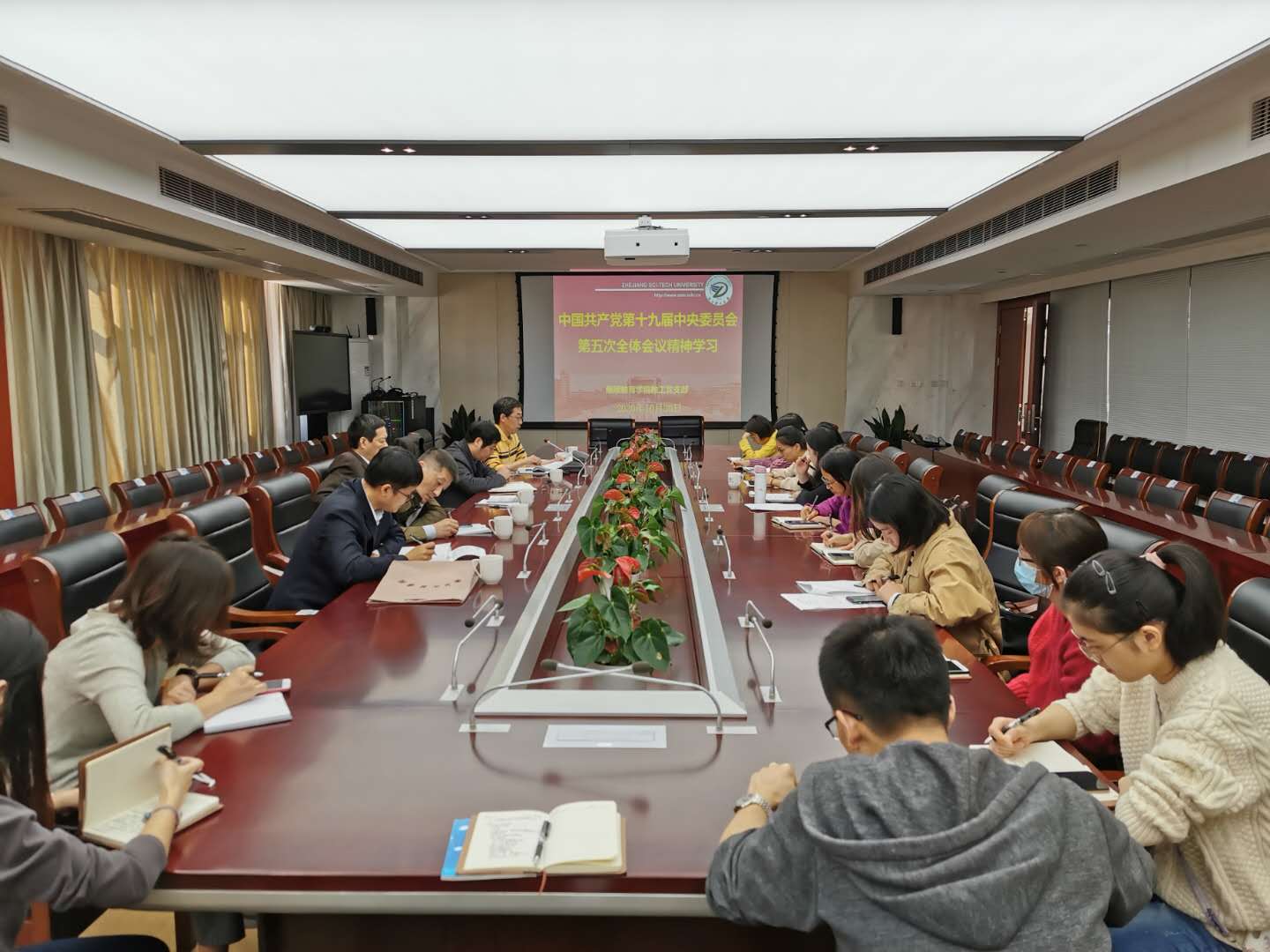 为深入学习贯彻党的十九届五中全会精神,10月30日上午,我院教工党支部在下沙校区行政楼215会议室组织专题学习会议。会议由教工党支部书记高建明主持,全体支部成员参加了会议。