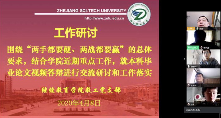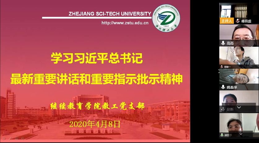 4月8日上午,我院教工党支部运用腾讯会议开展线上主题党日活动,传达学习习近平总书记在浙江考察讲话精神。会议由教工党支部书记高建明主持,全体支部成员参加会议。