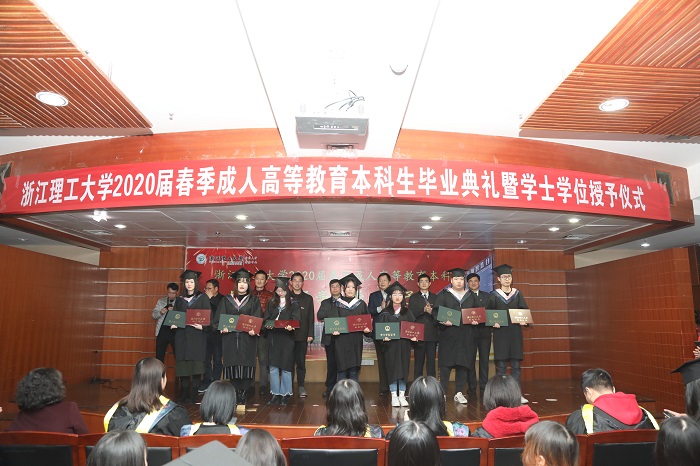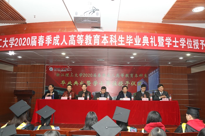 1月9日下午,我院2020届春季成人高等教育本科生毕业典礼暨学士学位授予仪式在下沙校区国际会展中心三楼报告厅举行。学院党政班子全体成员及教职工、班主任、毕业生家长代表出席典礼,典礼由学院党总支书记姚春序主持。