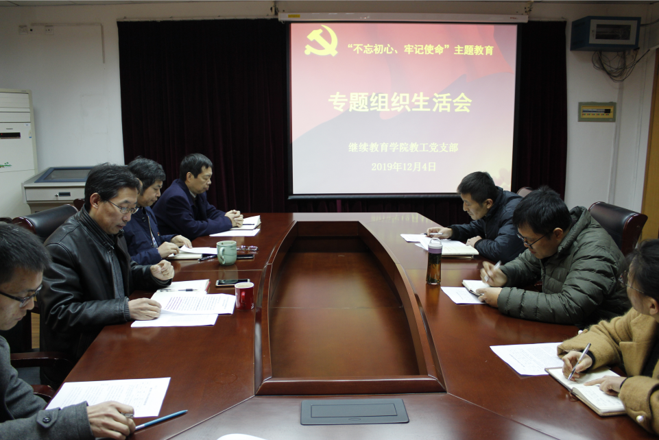 按照学校党委部署安排,12月4日上午,我院教工党支部在文一校区301会议室召开“不忘初心、牢记使命”主题教育专题组织生活会。会议由支部书记高建明主持。