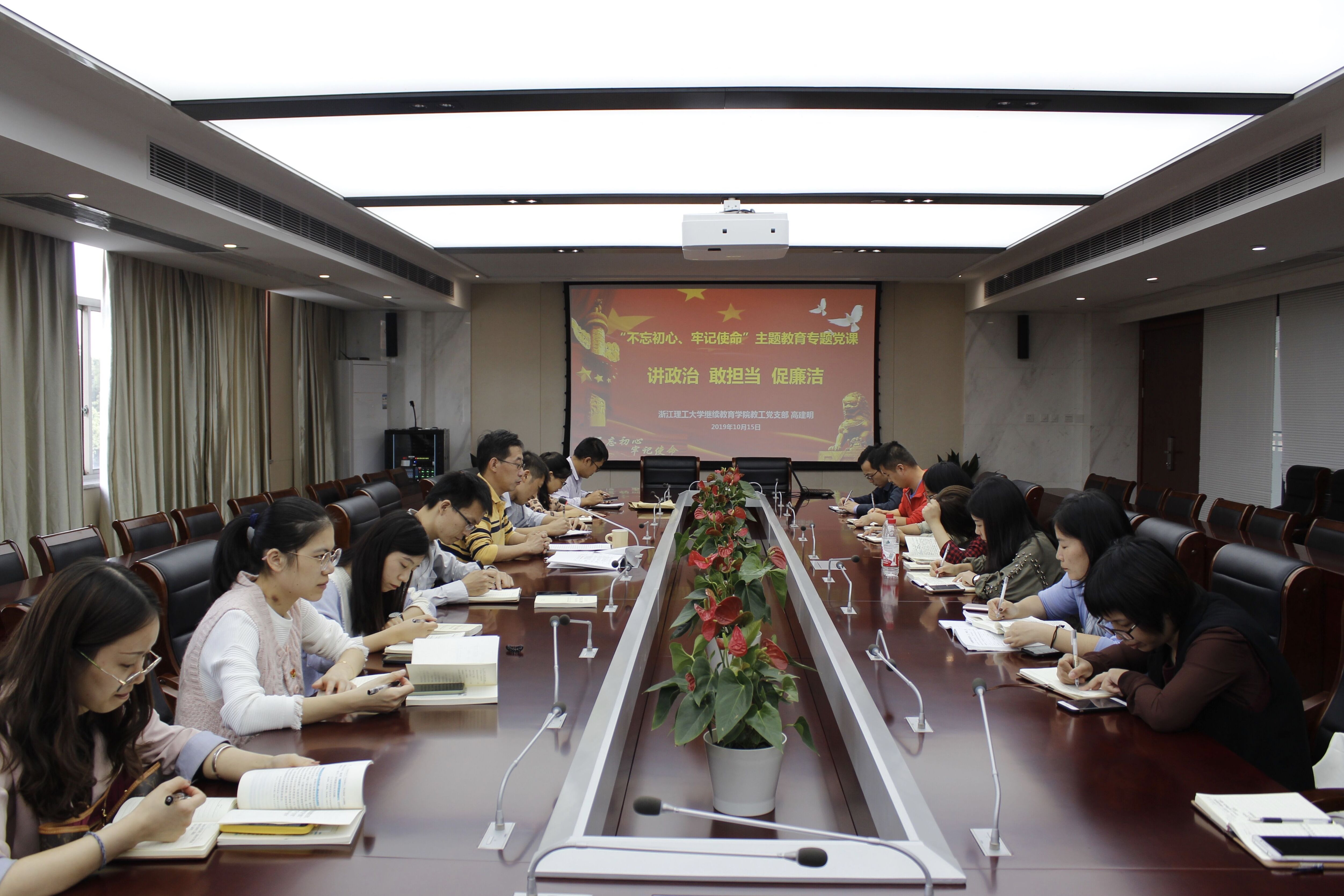 10月15日下午,我院教工党支部在下沙校区行政楼215会议室集中学习,教工党支部书记高建明结合习近平新时代中国特色社会主义思想和党的十九大精神,以《讲政治、敢担当、促廉洁》为主题,为支部党员讲授了一堂深入浅出、生动详实的专题党课。学校主题教育第七巡回督查组成员全程参加本次党课学习。