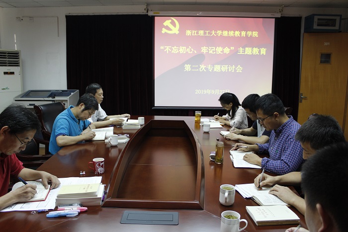 9月27日上午,我院党总支在文一校区301室召开“不忘初心、牢记使命”主题教育第二次专题研讨会,就“廉洁自律”和“宗旨意识”两个专题开展学习交流和研讨。学院领导班子成员、主题教育领导小组成员等参加研讨。