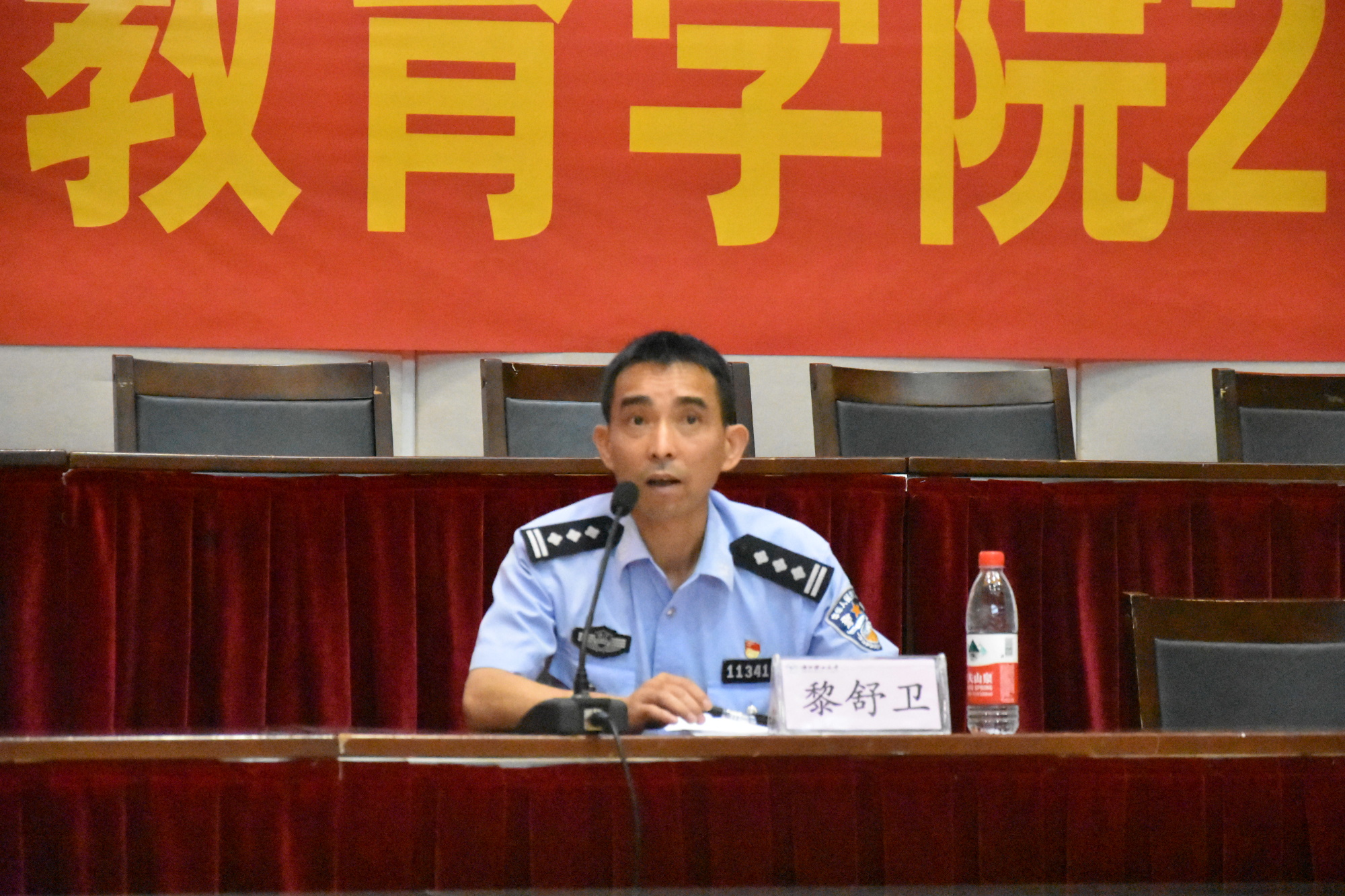 开学典礼后,白杨派出所民警黎舒卫应邀作安全知识讲座,从校园暴力、交通安全、防诈骗、防范“校园贷”等多个方面为新生们讲解安全知识。