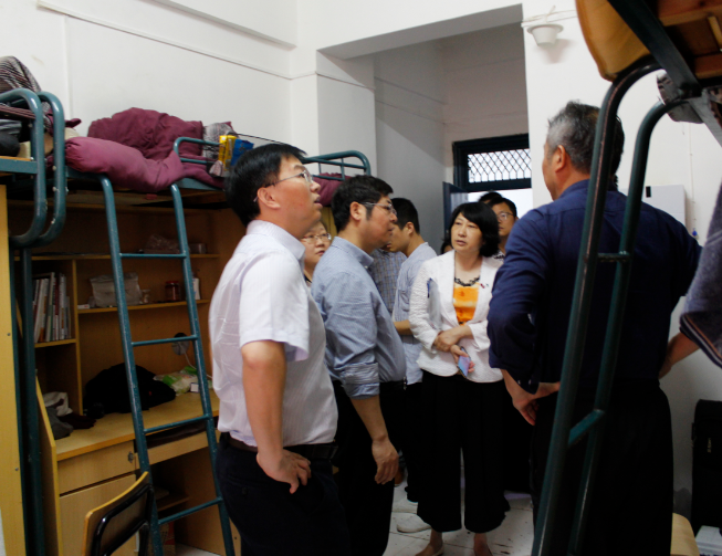王剑俊副校长一行先后对锦阳苑学生公寓、新联学生宿舍、恒盛学生公寓等学生宿舍和食堂进行安全隐患排查和消防安全检查。在学生宿舍,校领导重点检查了寝室控烟情况、宿舍用电安全、宿舍建筑规范情况和卫生情况,并对乱拉电线、楼道过窄、层高不足、安全指示灯过少等情况提出具体意见;在学生食堂,他们详细检查了消防设施配备情况、食品卫生安全情况等,对设施配备不到位等问题提出改进措施。