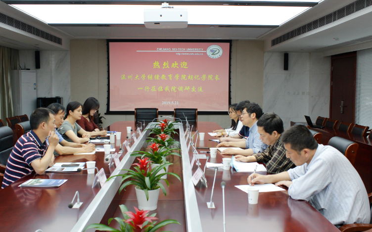 5月21日下午,温州大学继续教育学院院长胡记芳等一行4人来我院调研。院长傅昌盛、书记姚春序、副院长高建明在下沙校区行政楼215会议室接待了来宾,相关科室负责人陪同座谈。会上,双方就制度建设、管理模式、培训管理等方面的内容进行了深入探讨和交流。