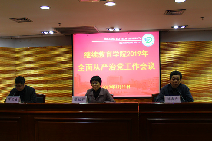 张信群在讲话中肯定了学院过去一年在全面从严治党工作方面所做的工作,指出继续教育工作情况复杂、廉政风险多、监管难度大,就进一步落实学院党风廉政建设责任制提出了要求。她强调要提高政治站位,坚持把政治建设摆在首位,着力推进全面从严治党;要强化责任担当,坚持把管党治党责任扛在肩上,扎实推进党风廉政建设和反腐败工作;结合学院实际,坚持把关键领域和环节作为监管重点,全面推进“清廉浙理”建设。