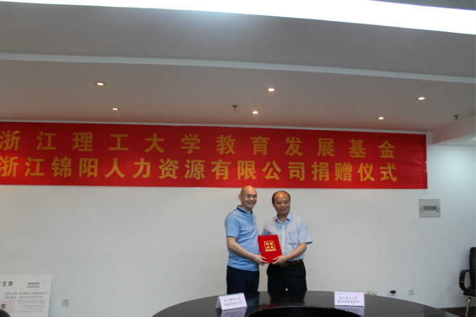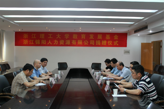 6月29日下午,我校与浙江锦阳人力资源有限公司在行政楼217会议室举行了捐赠仪式,公司向我校教育发展基金会捐赠人民币38万元,用于我校继续教育学院服装专业实验室建设。校长陈文兴、浙江锦阳人力资源有限公司董事长胡锦阳、校友办负责人以及继续教育学院领导班子全体成员等参加了捐赠仪式。