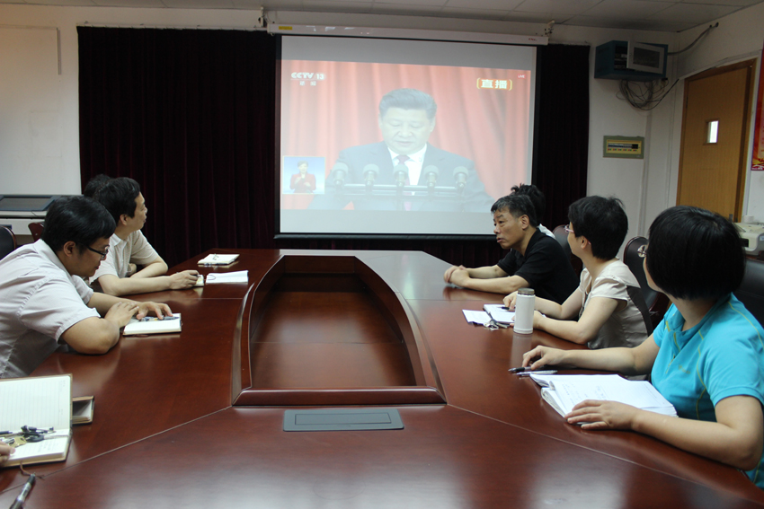 “路漫漫其修远兮,吾将上下而求索。” 最后,全院教职工党员同志在雄壮的《国际歌》声中,在默默回味着习近平总书记的号召“一定要不忘初心、继续前进”中结束了直播观看。