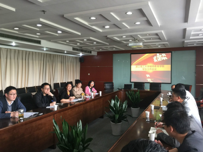 随后,我院在下沙校区行政楼215召开了学生工作会议,会上,各分院、企业人才班学生工作负责人分别就本单位学生工作的特色和亮点作了发言。黄黎、蒋肖波及学工部各科室老师在听取了大家的发言后,充分肯定了我院学生工作取得的成绩,并对我院的学生工作提出了意见和建议。
