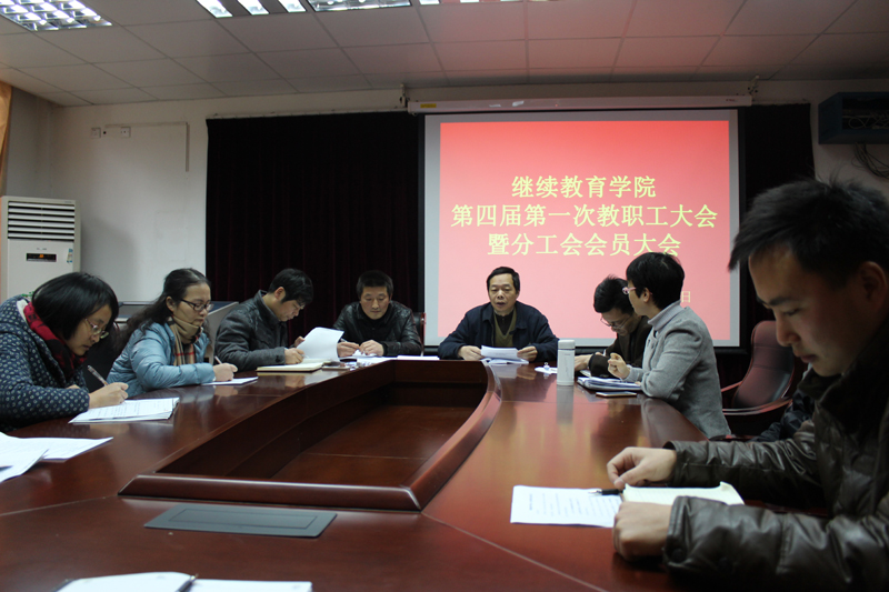1月13日上午,继续教育学院第四届第一次教职工大会暨工会会员大会在文一校区301会议室举行,会议由学院党总支书记姚春序主持,继续教育学院全体教职工参加会议。