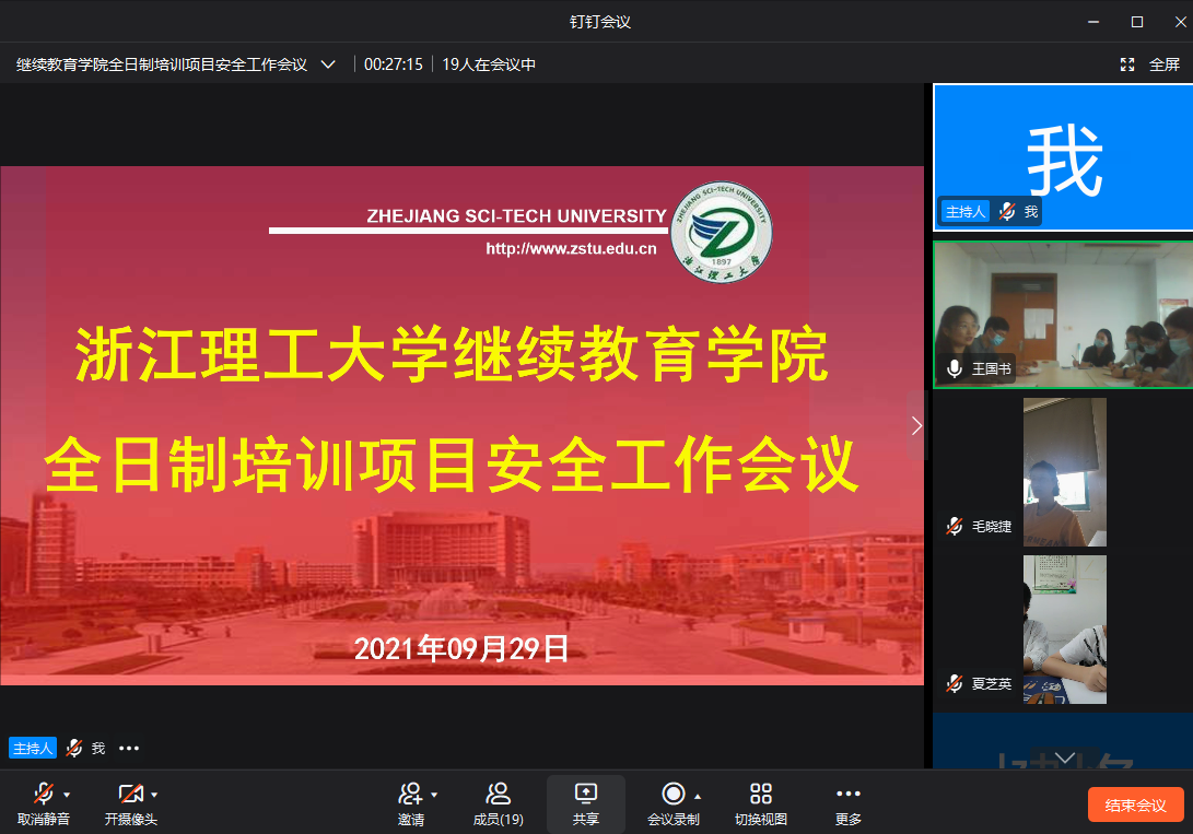9月29日下午,我院(中心)通过线上线下结合方式召开全日制培训项目安全工作会议,会议由副院长赵新主持,党总支副书记李卫敏、学院办公室和学生科相关人员、辅导员、各项目管理中心主要负责人参加会议。