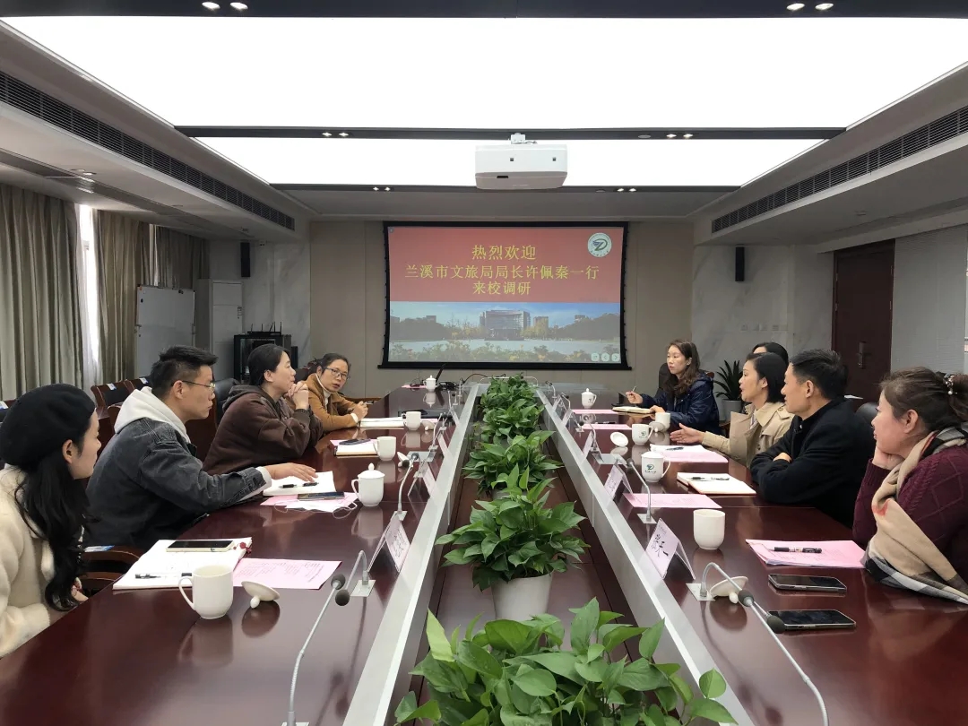 11月8日上午,兰溪市文化和广电旅游体育局局长许佩秦一行来校调研,继续教育学院党总支书记龚素瓅、院长郭江峰、湖州研究院副院长姚琛、服装学院表演系副主任张天一、继续教育学院培训科工作人员参加座谈会。座谈会由龚素瓅主持,会后来宾一行参观了学校丝绸博物馆。