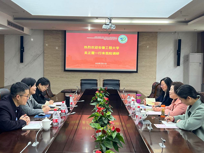 3月31日上午,安徽工程大学继续教育学院副院长吴正霞一行3人来我院调研交流。学院党委书记龚素瓅、副院长赵新、党委委员、学生科科长朱旭光参加了座谈会。