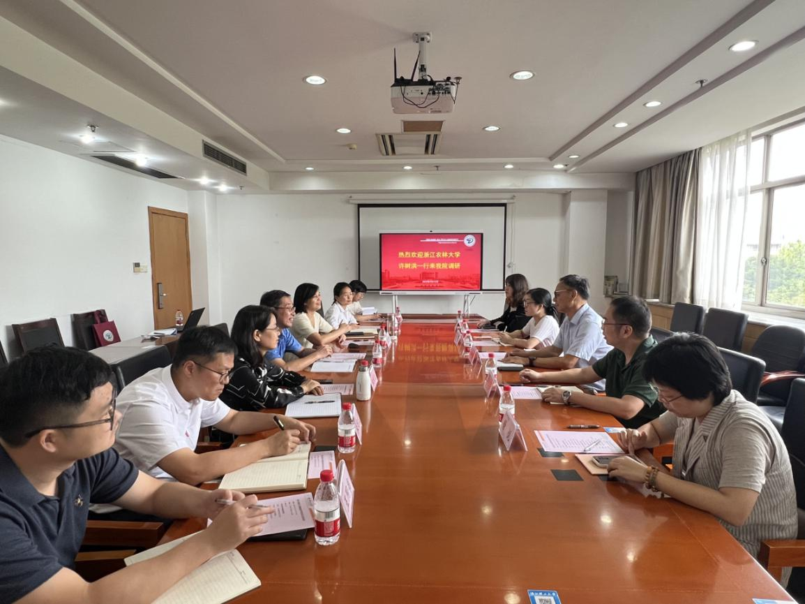 9月15日下午,浙江农林大学社继续教育学院党总支书记许树洪一行来我校调研交流。继续教育管理中心主任高建明、继续教育学院党委书记朱秋飞、院长龚素瓅、副院长赵新及学院科室负责人参加交流活动。