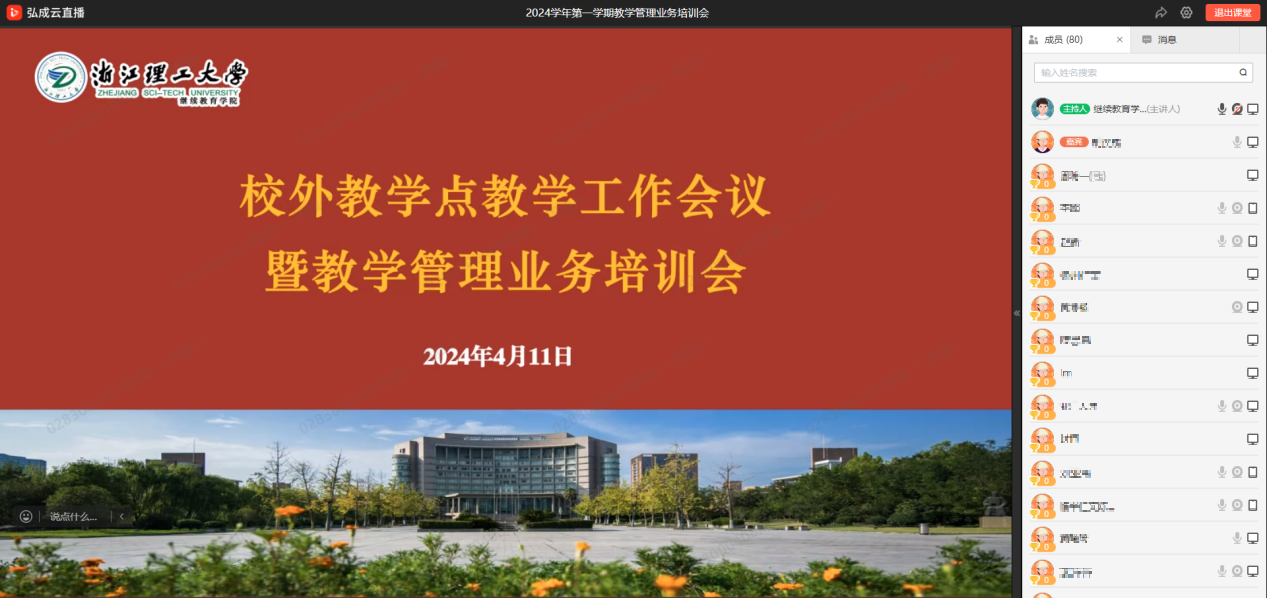 为深入贯彻落实省教育厅关于继续教育合作办学突出问题专项整治工作会议精神,扎实推进学历继续教育教学改革,增强沟通实效,提高教学质量,4月11日下午,我院召开校外教学点工作线上会议暨教学管理业务培训会。校外教学点教学负责人、教务管理人员和班主任等90余人参加会议。会议由继续教育学院副院长赵新主持,教务科全体成员及综合办公室相关人员参会并作交流发言。