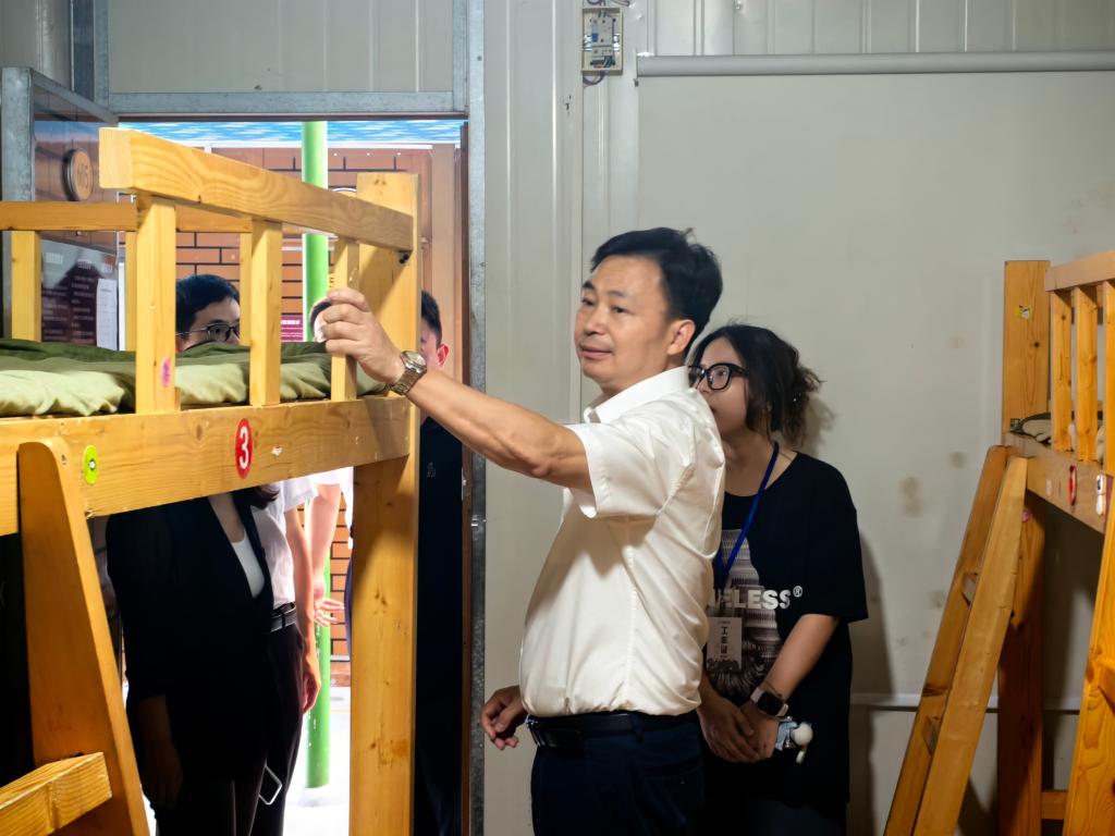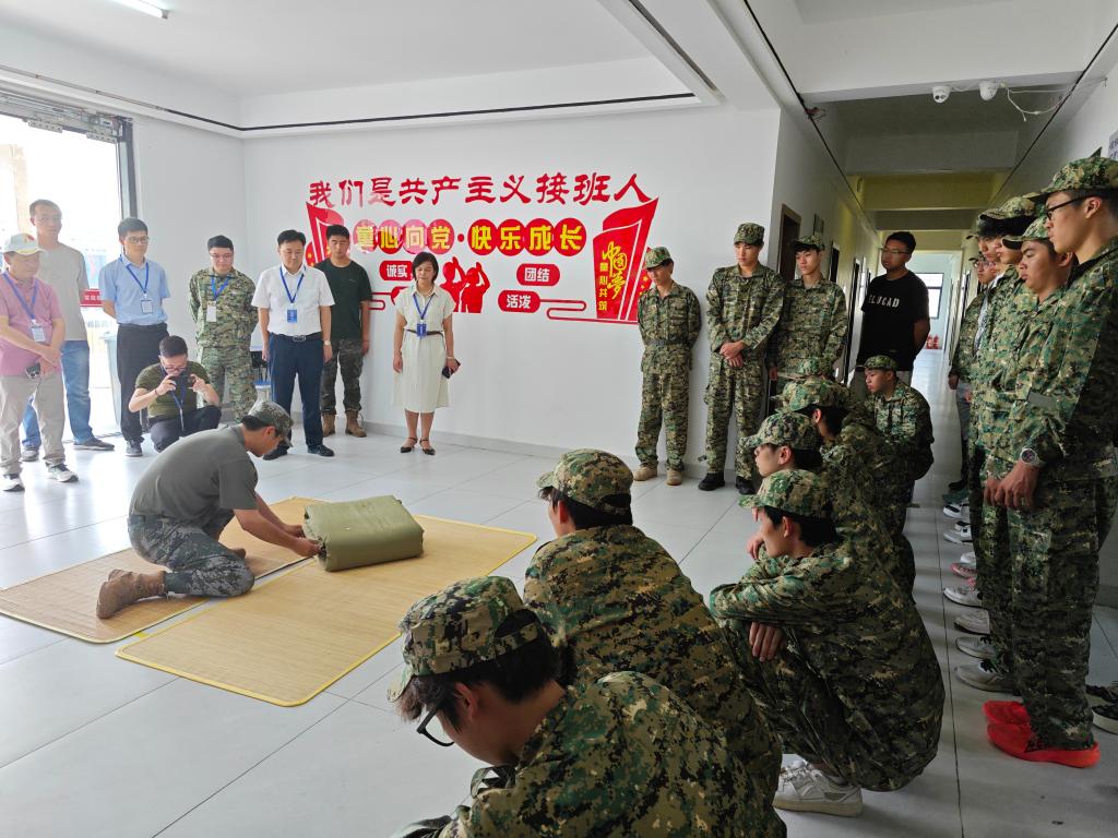 陈爱喜来到参训营地,走访各连的训练方阵,听取了军事素质拓展工作汇报,检查了后勤保障工作。训练场上,军事素质拓展2024级参训学生身着迷彩服,军姿挺拔,队伍整齐。他与师生开展亲切的沟通交流,详细了解学生拓展训练情况和遇到的困难、问题,并实地查看学生住宿场地和就餐场所。陈爱喜充分肯定了军事素质拓展工作,对同学们昂扬的精神精神面貌给予了肯定,对教官和带训教师的辛勤付出表达了感谢。同时,他也结合实际,对接下来的工作提出了要求。陈爱喜强调:一要精心组织活动,军事素质拓展是大学生活的重要一课,影响深远,继续教育学院要精心谋划,认真落实各项计划安排,保质保量完成任务;二要密切关注受训学生身心状态,加强安全教育,及时引导排解,确保军事素质拓展工作有序进行。