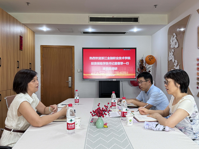 9月3日下午,浙江金融职业技术学院投资保险学院书记童春芽一行来我院调研交流。学院院长龚素瓅及相关人员参加交流活动。