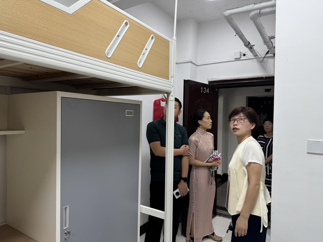 楼玉兰在检查中反复强调,安全是办学治校的基石,尤其在暑期人员流动复杂的背景下,必须克服麻痹思想,以“时时放心不下”的责任感落实落细各项制度。她要求各助学部负责人切实履行安全第一责任人职责,强化值班巡查,确保信息报送渠道24小时畅通,构建“人人有责、层层负责”的安全共同体。楼玉兰在现场要求各助学部必须将宿舍安全放在首位,完善并严格执行安全巡查制度,加强安全宣传教育,确保安全管理责任落实到人。检查组细致检查宿舍楼内的消防通道是否畅通、灭火器及消火栓等设施是否完好有效,强调必须确保消防设备随时可用,应急疏散标识清晰。针对暑期宿舍用电特点,重点排查宿舍内电器使用规范、线路安全状况及公共区域配电设施,要求严格管理大功率电器,杜绝私拉乱接现象,消除火灾隐患。