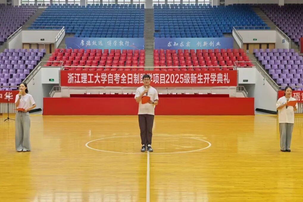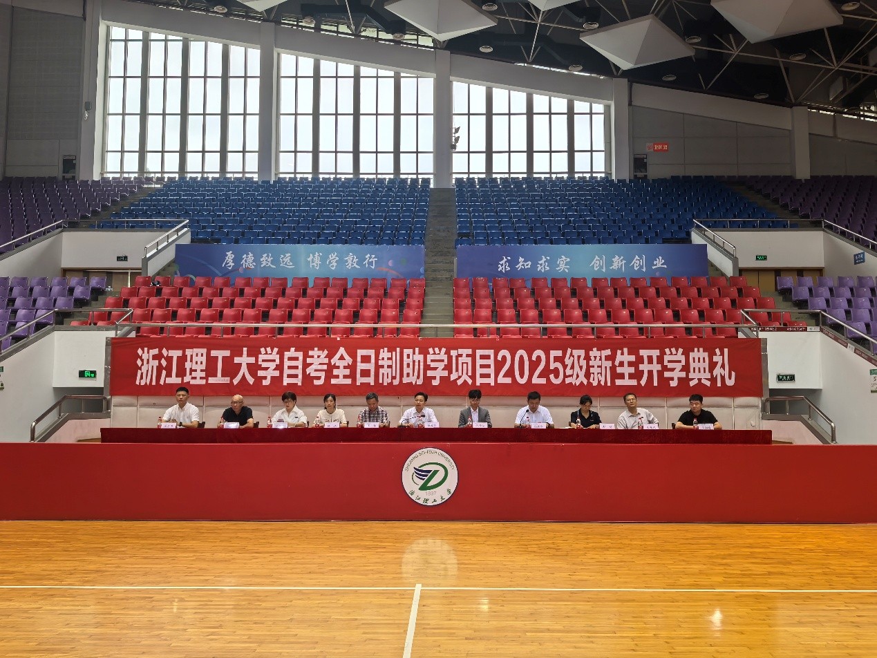 9月24日上午,浙江理工大学自考全日制助学项目2025级新生开学典礼在下沙校区体育馆举行。校党委委员、副校长陈爱喜,继续教育学院党政班子全体成员、校友代表、自考全日制助学项目有关负责人、辅导员、新生班主任和2025级全体新生参加开学典礼。开学典礼由继续教育学院院长孙显水主持。