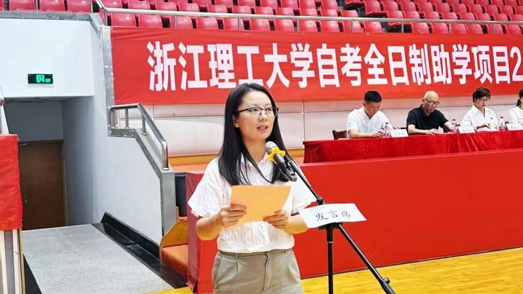 副校长陈爱喜代表学校向2025级全体自考助学新同学的到来表示祝贺和欢迎。他介绍了浙江理工大学百年学府的源起初心、建设成就和奋斗目标。他指出,科技进步向来是推动社会变革的根本力量,“九三”大阅兵呈现出的众多先进技术,正是无数匠人的钻研与付出,这不仅是国家发展的体现,更是青年人用青春践行“强国梦”的鲜活教科书!他对2025级新同学提出三点要求:一是要告别过去,拥抱未来。激励同学们珍惜学习生活,去勇敢地尝试、真诚地思考、热烈地生长,积蓄光芒,积极拥抱更辽阔的世界。二是潜心砺行,笃志奋进。在信息喧嚣的时代,要主动选择“潜心学习”,脚踏实地,道阻且长,行则将至。三是心之所向,砺之所行。他希望同学们在浙理成长为最好的自己,以青年人的不屈勇气与风华正茂引领未来,让青春理想在不懈奋斗中焕发出耀眼夺目的时代光芒。