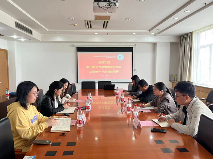 为深入学习贯彻习近平新时代中国特色社会主义思想,推动主题教育走深走实,我院加强做好与兄弟院校之间的沟通交流。5月8日下午,浙江师范大学终身教育学院副院长沈峻岭一行来我院开展调研交流活动。学院副院长赵新及相关科室人员参加了座谈会。