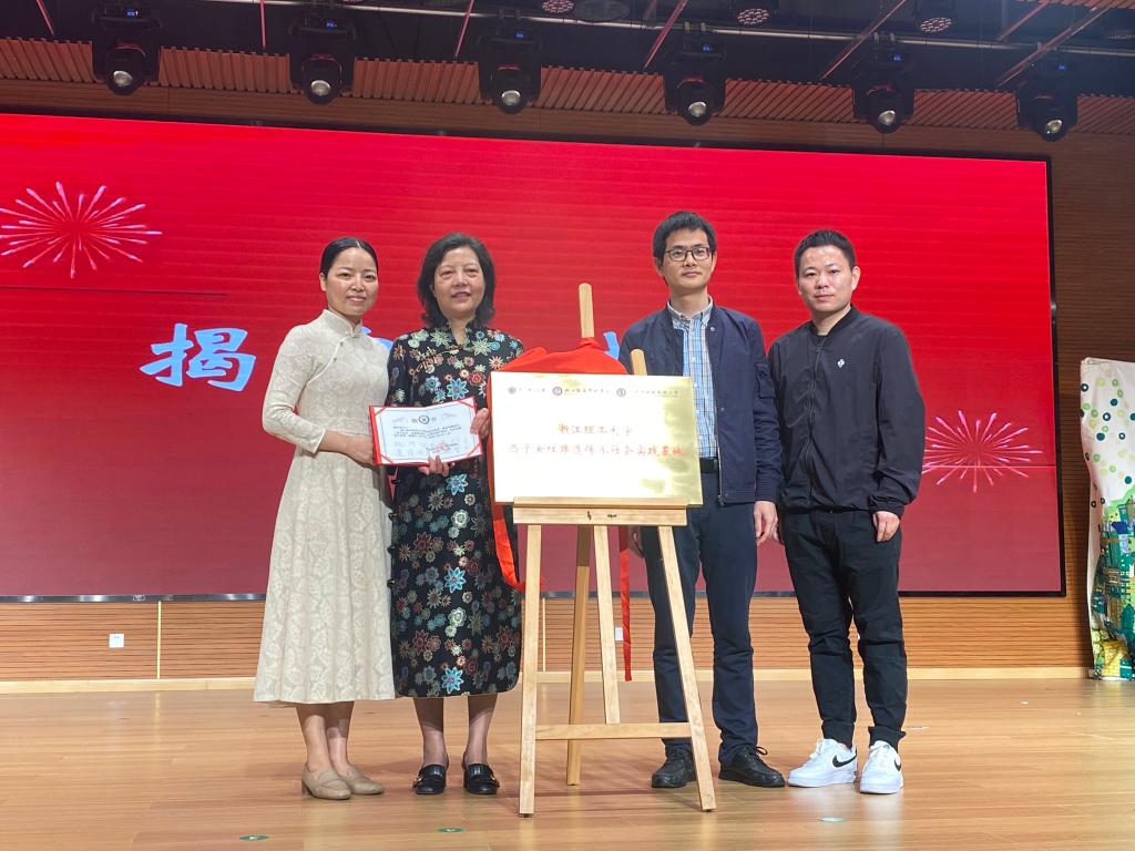 杭州观成实验学校党支部书记、杭州市观成武林小学书记校长干定雄,杭州唐风汉楚服饰有限公司总经理、杭州“西子女红”非遗传承人、我院优秀校友唐红英,继续教育学院党委副书记李卫敏,丝绸博物馆博远文化宣讲团指导老师郭超参与揭牌仪式,中国教育学会美术教育专业委员会、省市非遗保护中心、拱墅区教育局、浙江省土布纺织技艺非遗项目代表性传承人、拱墅区第21组共同体学校等相关领导、专家,观成武林小学全体教师、学生及家长代表现场见证了本次活动,浙江衢州、四川昭化、贵州黎平等山海协作校师生代表云端连线见证。